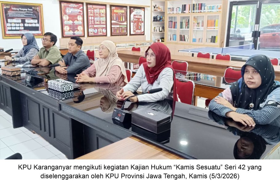 KARANGANYAR – Komisi Pemilihan Umum (KPU) Kabupaten Karanganyar mengikuti kegiatan Kajian Hukum “Kamis Sesuatu” Seri 42 yang diselenggarakan oleh KPU Provinsi Jawa Tengah, Kamis (5/3/2026). Kegiatan ini merupakan bagian dari serial advokasi hukum pemilu yang diikuti oleh jajaran KPU Kabupaten/Kota se-Jawa Tengah. Kajian membahas film “Kejarlah Janji”, sebuah film produksi KPU RI yang digunakan sebagai media sosialisasi Pemilu dan pendidikan politik bagi masyarakat. Anggota KPU Provinsi Jawa Tengah, Akmaliyah membuka kajian hukum. Akmaliyah menekankan pentingnya advokasi hukum pemilu sebagai upaya preventif dalam membangun kesadaran demokrasi di masyarakat. Dalam sambutannya disampaikan bahwa advokasi hukum pemilu tidak hanya berkaitan dengan penyelesaian sengketa atau penindakan pelanggaran, tetapi juga mencakup langkah-langkah edukatif untuk mendorong masyarakat memahami pentingnya aturan main dalam demokrasi. “Advokasi hukum pemilu ini adalah upaya preventif untuk membangun kesadaran kolektif tentang pentingnya taat aturan dalam proses demokrasi,” demikian disampaikan dalam sambutan pembukaan kegiatan," ujarnya. Ketua Divisi Hukum dan Pengawasan KPU Klaten, Samsul Huda, menjelaskan bahwa film Kejarlah Janji diproduksi oleh KPU RI sebagai bagian dari strategi sosialisasi Pemilu 2024. “Film Kejarlah Janji diproduksi oleh KPU RI dalam rangka mensosialisasikan gelaran Pemilu 2024 dan menyampaikan pesan moral mengenai realitas politik yang terjadi sebelum, saat, dan setelah pemilu,” jelas Samsul Huda. Film yang disutradarai oleh Garin Nugroho tersebut mengangkat kisah sebuah keluarga di sebuah desa yang menghadapi dinamika politik menjelang pemilu. Melalui konflik yang terjadi di dalam keluarga tersebut, film ini menggambarkan berbagai persoalan demokrasi seperti politik uang, penyebaran hoaks, hingga sikap apatis masyarakat terhadap pemilu. Menurut Samsul Huda, film ini tidak hanya menyajikan hiburan, tetapi juga membawa pesan penting mengenai pendidikan politik bagi masyarakat. “Film ini tidak hanya menghadirkan hiburan, tetapi juga membawa pesan pendidikan politik kepada masyarakat, khususnya generasi muda dan pemilih pemula,” ujar Samhud, sapaan akrabnya. Samhud menambahkan bahwa film tersebut menunjukkan berbagai tantangan yang masih dihadapi dalam kehidupan demokrasi, seperti rendahnya kepercayaan publik terhadap politik, pragmatisme pemilih, serta potensi apatisme atau golput. “Film ini menunjukkan bahwa tantangan utama demokrasi kita berada pada aspek kepercayaan publik, literasi politik, dan partisipasi masyarakat,” tambahnya. Melalui diskusi tersebut, para peserta juga memberikan berbagai masukan terkait efektivitas penggunaan film sebagai media pendidikan pemilih, termasuk pentingnya diskusi atau bedah film setelah kegiatan nonton bersama agar pesan demokrasi dapat dipahami secara lebih mendalam oleh masyarakat. Kegiatan ini diharapkan dapat memperkuat pemahaman penyelenggara pemilu dalam mengembangkan metode sosialisasi yang lebih inovatif, sehingga pendidikan pemilih dapat dilakukan secara berkelanjutan dan mampu meningkatkan partisipasi masyarakat dalam pemilu. “Setiap warga negara memiliki tanggung jawab dalam menentukan masa depan bangsa melalui pemilu,” pungkas Samsul Huda. Dengan mengikuti kegiatan ini, KPU Kabupaten Karanganyar berkomitmen untuk terus meningkatkan kapasitas kelembagaan serta memperkuat edukasi demokrasi kepada masyarakat sebagai bagian dari upaya mewujudkan pemilu yang berintegritas dan berkualitas. (TNT) ....
