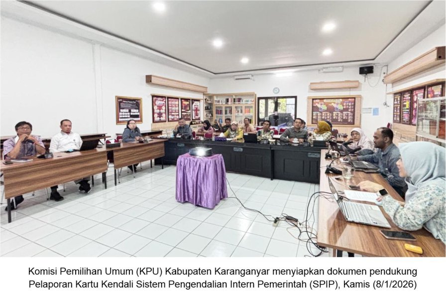 KARANGANYAR - Komisi Pemilihan Umum (KPU) Kabupaten Karanganyar menggelar Rapat Koordinasi (Rakor) Pengisian Daftar Uji Penyelenggaraan Sistem Pengendalian Intern Pemerintah (SPIP) Tahun 2025, Rabu (7/1/2026), di Aula Kantor KPU Karanganyar. Rakor dihadiri oleh Ketua dan Anggota KPU Kabupaten Karanganyar, Sekretaris, Kepala Subbagian, serta staf Subbagian Teknis Penyelenggaraan Pemilu dan Hukum (TPPH). Ketua KPU Karanganyar, Daryono, menyampaikan agar pengisian daftar uji dilakukan sesuai ketentuan. Dalam rakor tersebut dibahas pula mekanisme evaluasi penyelenggaraan SPIP, khususnya evaluasi atas laporan kartu kendali SPIP dan daftar uji penyelenggaraan SPIP. Evaluasi dilakukan untuk memastikan kepatuhan, kelengkapan, serta relevansi dokumen pendukung yang disampaikan melalui aplikasi e-SPIP, sesuai dengan ketentuan yang berlaku. Melalui rapat koordinasi ini, diharapkan seluruh unit kerja di lingkungan KPU Kabupaten Karanganyar memiliki pemahaman yang sama terkait pengisian daftar uji SPIP Tahun 2025, sehingga penyelenggaraan SPIP dapat berjalan optimal sebagai bagian dari penguatan tata kelola pemerintahan yang baik. Pelaksana Tugas (Plt) Kasubbag TPPH sekaligus Ketua Satgas SPIP KPU Karanganyar, Eko Handoko penyampaian dasar hukum penyelenggaraan penngisian daftar uji publik SPIP. “Dasar hukum kegiatan ini mengacu pada UU 7 Tahun 2017 tentang Pemilihan Umum, Peraturan Pemerintah Nomor 60 Tahun 2008 tentang SPIP, dan Peraturan KPU Nomor 3 Tahun 2023, serta Keputusan KPU Nomor 855 Tahun 2025 tentang Pedoman Teknis Penyelenggaraan SPIP di lingkungan KPU,” katanya. Lebih lanjut disampaikan bahwa tujuan utama SPIP adalah untuk mewujudkan kegiatan yang efektif dan efisien, laporan keuangan yang andal, pengamanan aset negara, serta ketaatan terhadap peraturan perundang-undangan. Selain itu, Eko Handoko juga memaparkan peran Satuan Tugas SPIP KPU Kabupaten Karanganyar yang dibentuk berdasarkan SK KPU Kabupaten Karanganyar Tahun 2025. “Harapannya agar semua satgas dan subbagian berkolabirasi dalam pengisian daftar uji penyelenggaraan SPIP KPU Karanganyar,” ucapnya. (HRN)