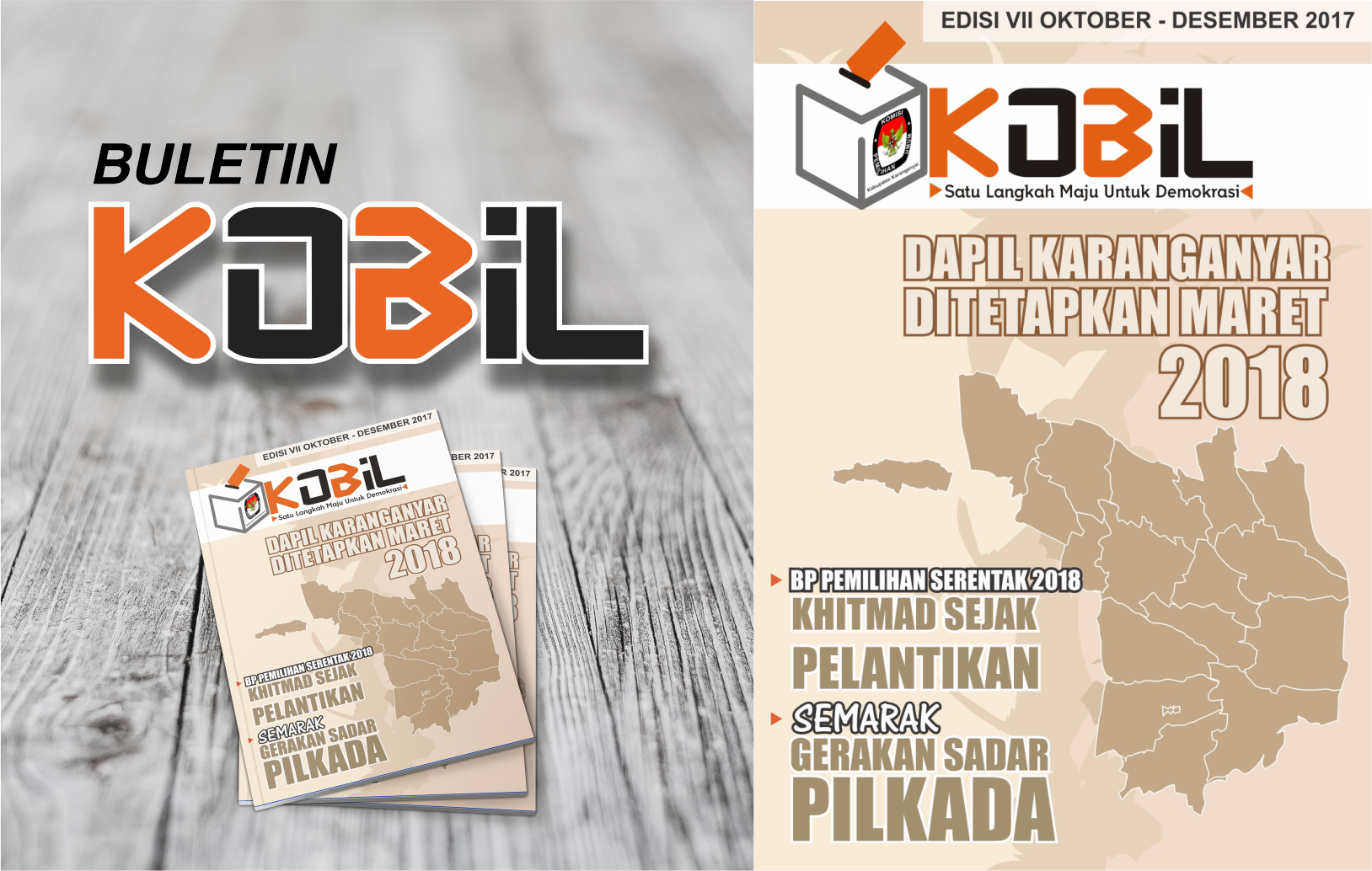 Kobil Edisi VIII (Maret - Mei 2021) Alhamdulillah, segala puji bagi Allah Tuhan Semesta Alam. Atas limpahan rahmat dan karunia Allah, Majalah Kobil tahun 2021 bisa hadir kembali di tengah pembaca yang budiman. Masih dengan rubrik-rubrik yang relevan, Majalah Kobil bertransformasi menjadi majalah elektronik (electronic paper/e-paper) KPU Karanganyar. Semangat dalam keterbukaan informasi publik dan kebutuhan informasi yang akurat maka Majalah Kobil hadir dengan wajah baru. Kembali hadirnya Majalah Kobil ini merupakan semangat baru KPU Karanganyar untuk memberikan informasi demokrasi, politik dan kepemiluan kepada pembaca.  Selengkapnya klik : Buletin Kobil Mar - Mei 21