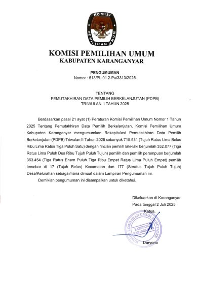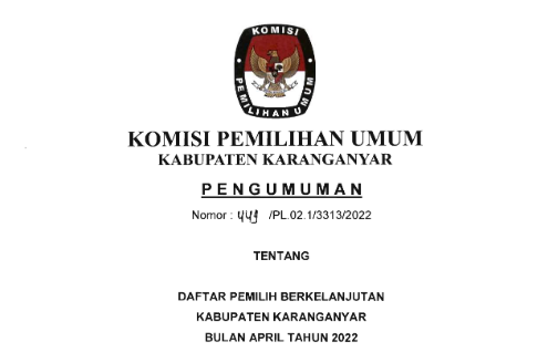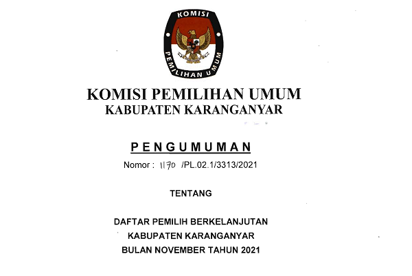 Berikut Publikasi Pengumuman Rekapitulasi Daftar Pemilih Berkelanjutan (DPB) Tahun 2021