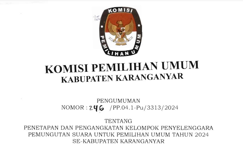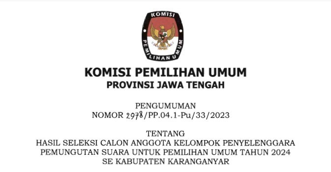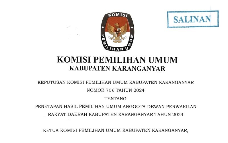 KEPUTUSAN KOMISI PEMILIHAN UMUM KABUPATEN KARANGANYAR NOMOR 722 TAHUN 2024 TENTANG PENETAPAN CALON TERPILIH ANGGOTA DEWAN PERWAKILAN RAKYAT DAERAH KABUPATEN KARANGANYAR DALAM PEMILIHAN UMUM TAHUN 2024.