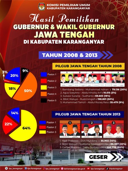 #Temanpemilih, penasaran dengan hasil Pemilihan Gubernur dan Wakil Gubernur Jawa Tengah di Kabupaten Karanganyar sejak tahun 2008 hingga 2024 ?