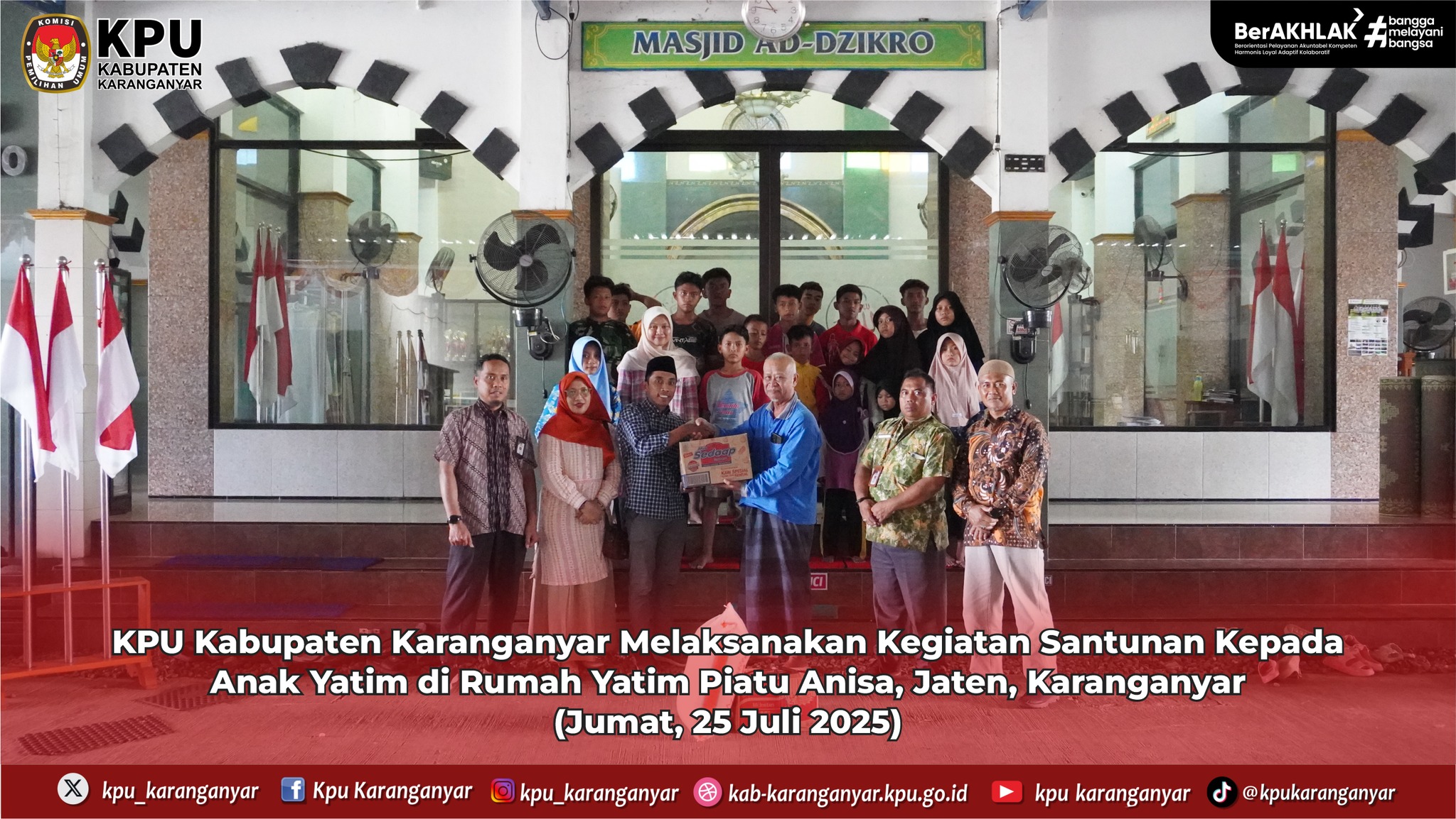 KPU Kabupaten Karanganyar Melaksanakan Kegiatan Santunan Kepada Anak Yatim di Rumah Yatim Piatu Anisa, Jaten, Karanganyar (Jumat, 25 Juli 2025)