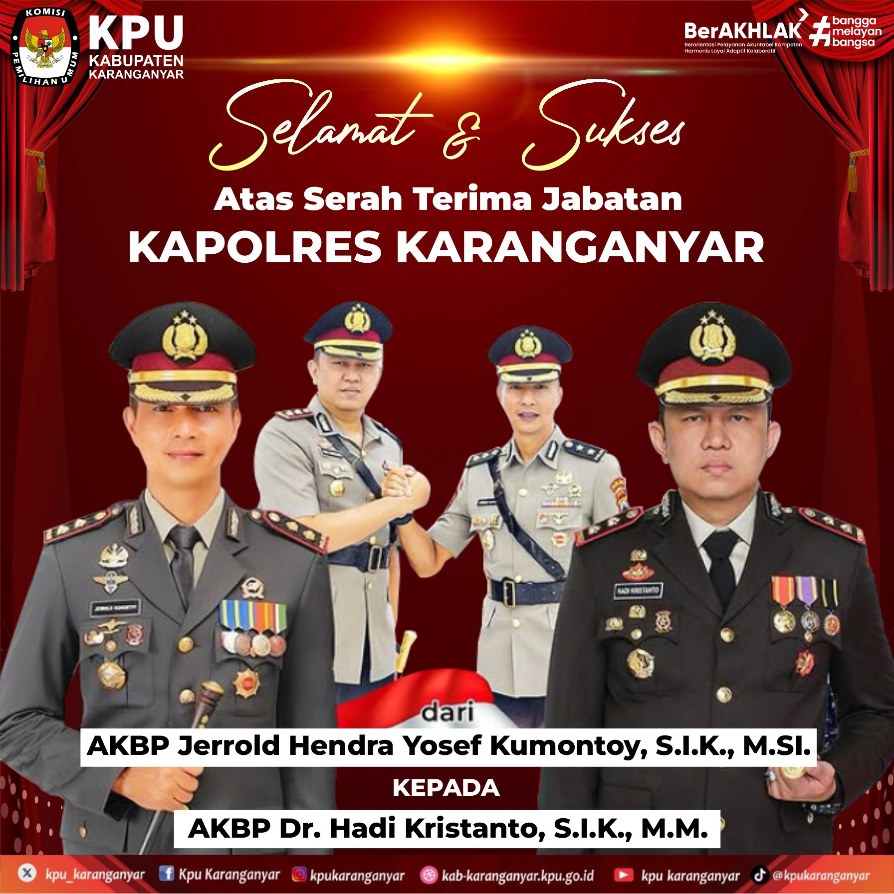 Terimakasih kepada AKBP. Jerrold Hendra Yosef Kumontoy, S.I.K. M.Si. Minggu, 26 Januari 2025 14:49 10 KPU Karanganyar Mengucapkan #kpukaranganyar Bagikan: Telah dilihat 10 kali