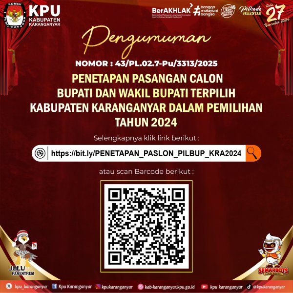 Scan QR Code tersebut atau dapat diunduh melalui laman website KPU Karanganyar.