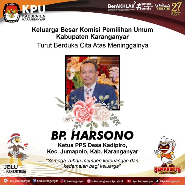 Turut Berduka Cita Atas Meninggalnya Ketua PPS Desa Kadipiro, Kec. Jumapolo, Kab. Karanganyar, Bapak Harsono.