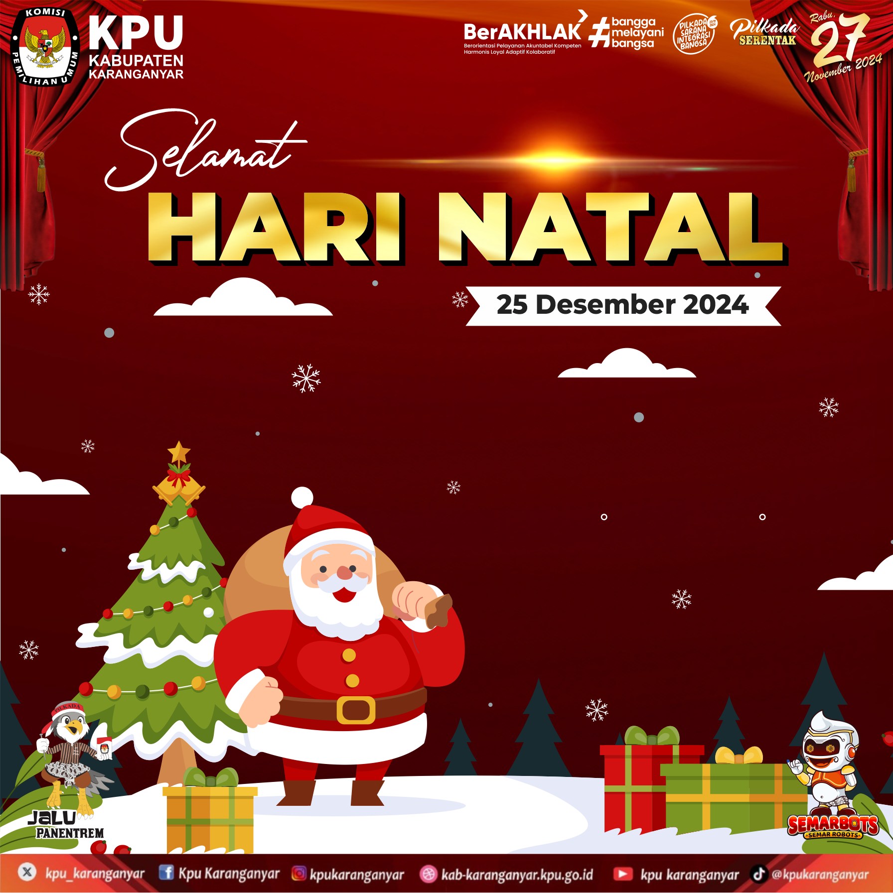 KPU Kabupaten Karanganyar mengucapkan Selamat Natal, semoga Natal ini membawa damai dan kebahagiaan bagi seluruh umat manusia. #KPUMelayani #KPUKaranganyar