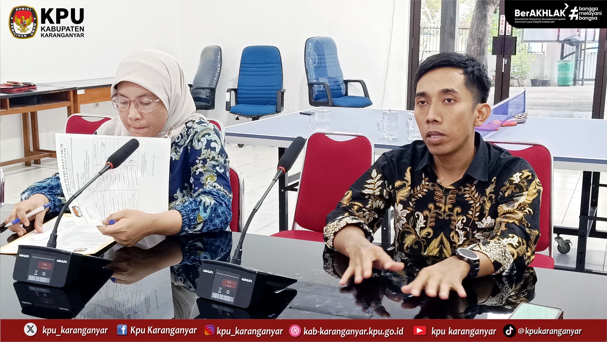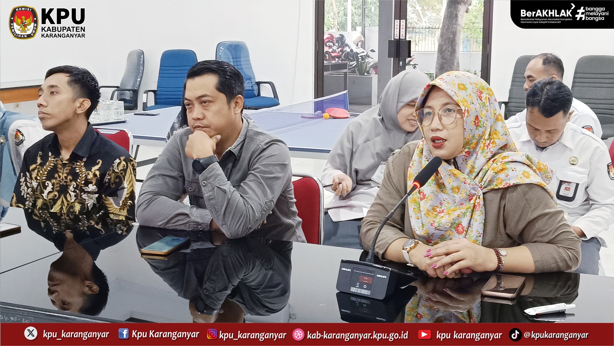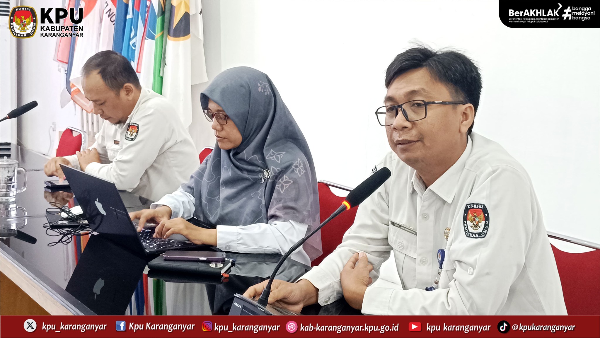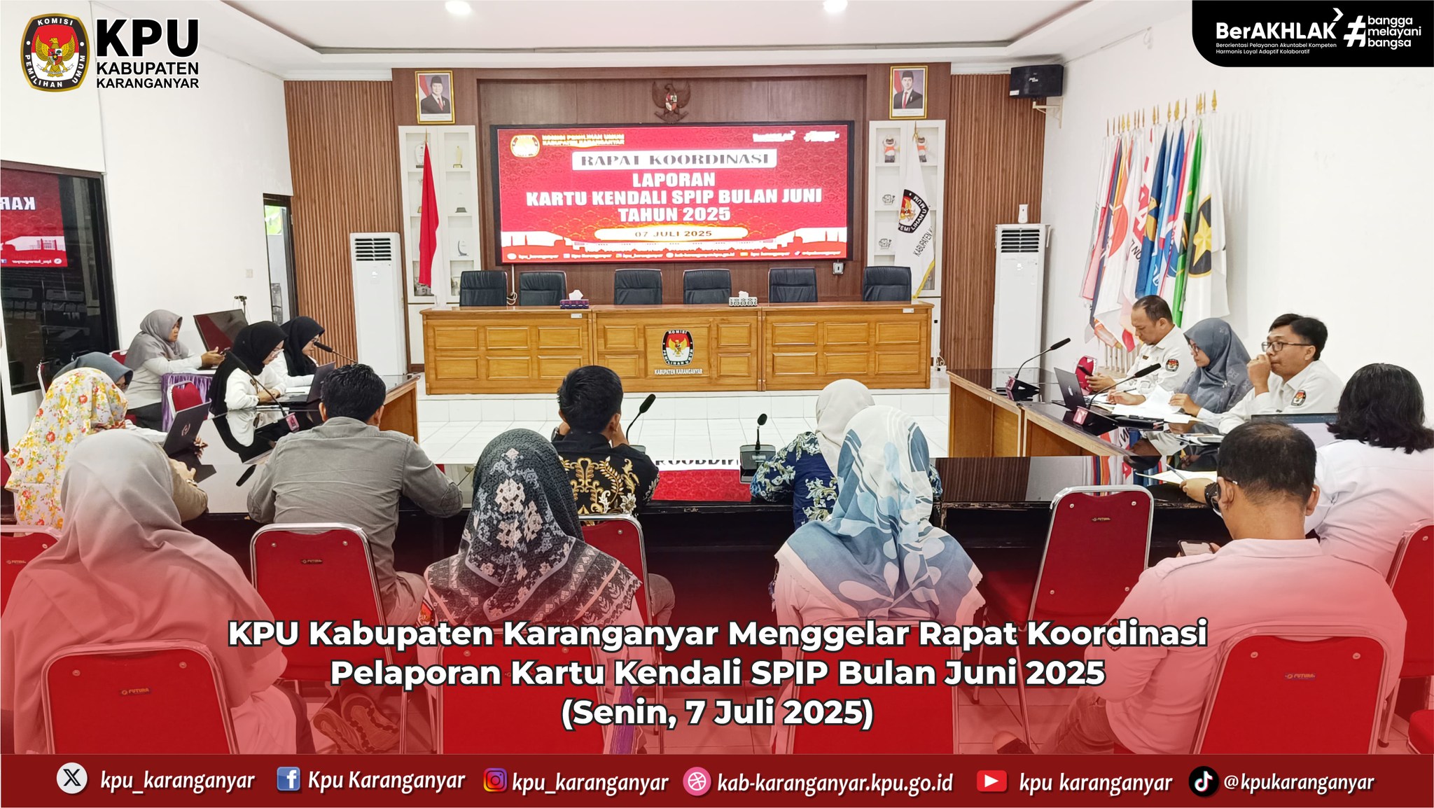 KPU Kabupaten Karanganyar menggelar Rapat Koordinasi Pelaporan Kartu Kendali SPIP Bulan Juni 2025, bertempat di aula Kantor KPU Kabupaten Karanganyar, Senin (7 Juli 2025)