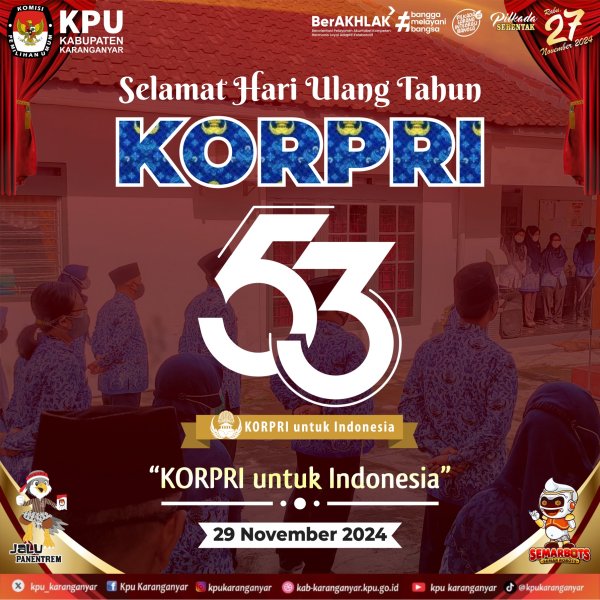 KPU Kabupaten Karanganyar mengucapkandengan tema “Korpri Untuk Indonesia”, Jum'at 29 November 2024