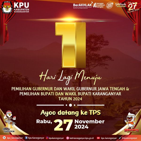 1 Hari Lagi Menuju Pemilihan Gubernur dan Wakil Gubernur Jawa Tengah serta Bupati dan Wakil Bupati Karanganyar Tahun 2024.