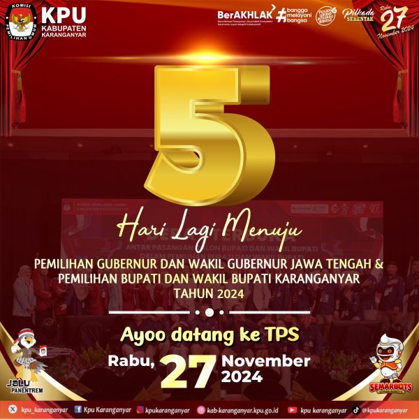 5 Hari Lagi Menuju Pemilihan Gubernur dan Wakil Gubernur Jawa Tengah serta Bupati dan Wakil Bupati Karanganyar Tahun 2024.