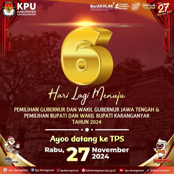 6 Hari Lagi Menuju Pemilihan Gubernur dan Wakil Gubernur Jawa Tengah serta Bupati dan Wakil Bupati Karanganyar Tahun 2024.