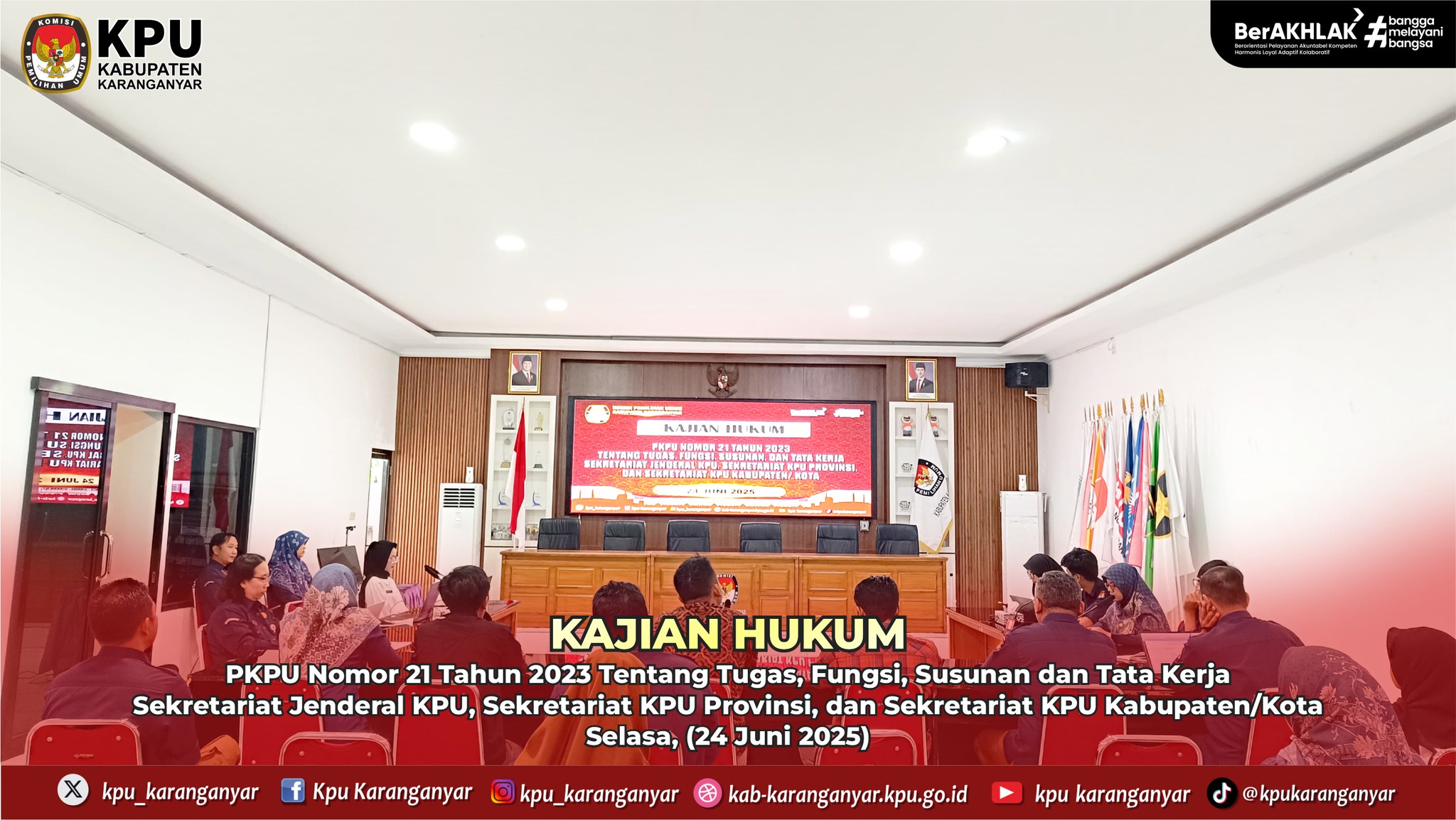 KPU Karanganyar Gelar Kajian Hukum PKPU Nomor 21 Tahun 2023 Tentang Tugas Fungsi Susunan dan Tata Kerja Sekretariat Jenderal KPU Sekretariat KPU Provinsi dan Sekretariat KPU Kabupaten/Kota