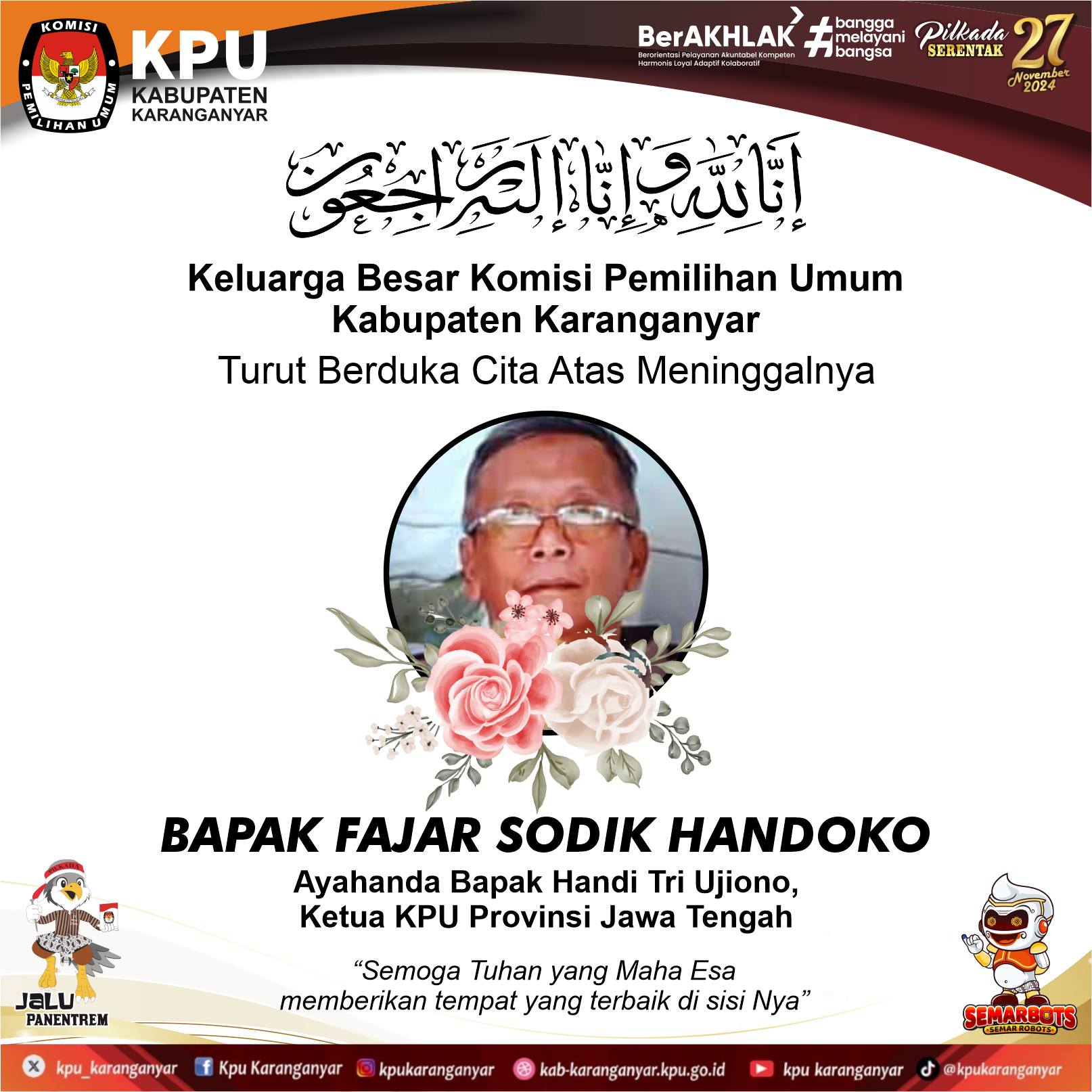Turut berduka cita atas berpulangnya Bapak Fajar Sodik Handoko, Ayahanda dari Bapak Handi Tri Ujiono, Ketua KPU Provinsi Jawa Tengah.