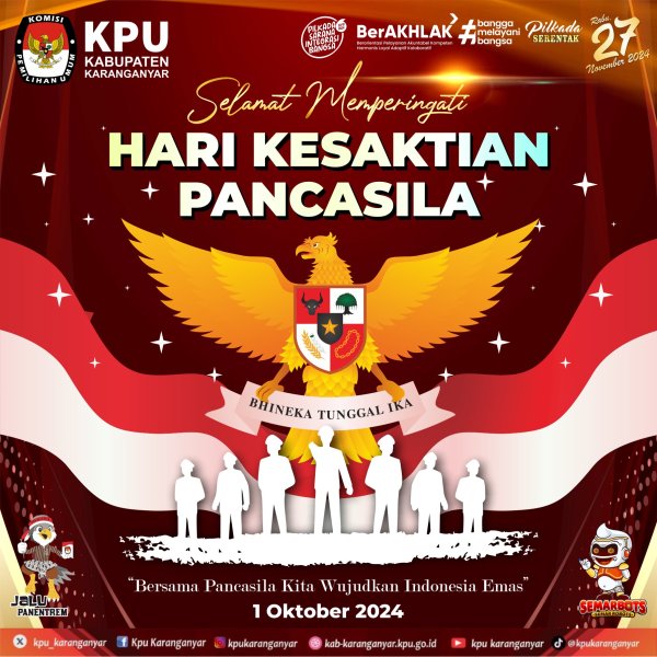 segenap jajaran KPU Kabupaten Karanganyar mengucapkan Selamat Hari Kesaktian Pancasila 1 Oktober 2024 "Bersama Pancasila Kita Wujudkan Indonesia