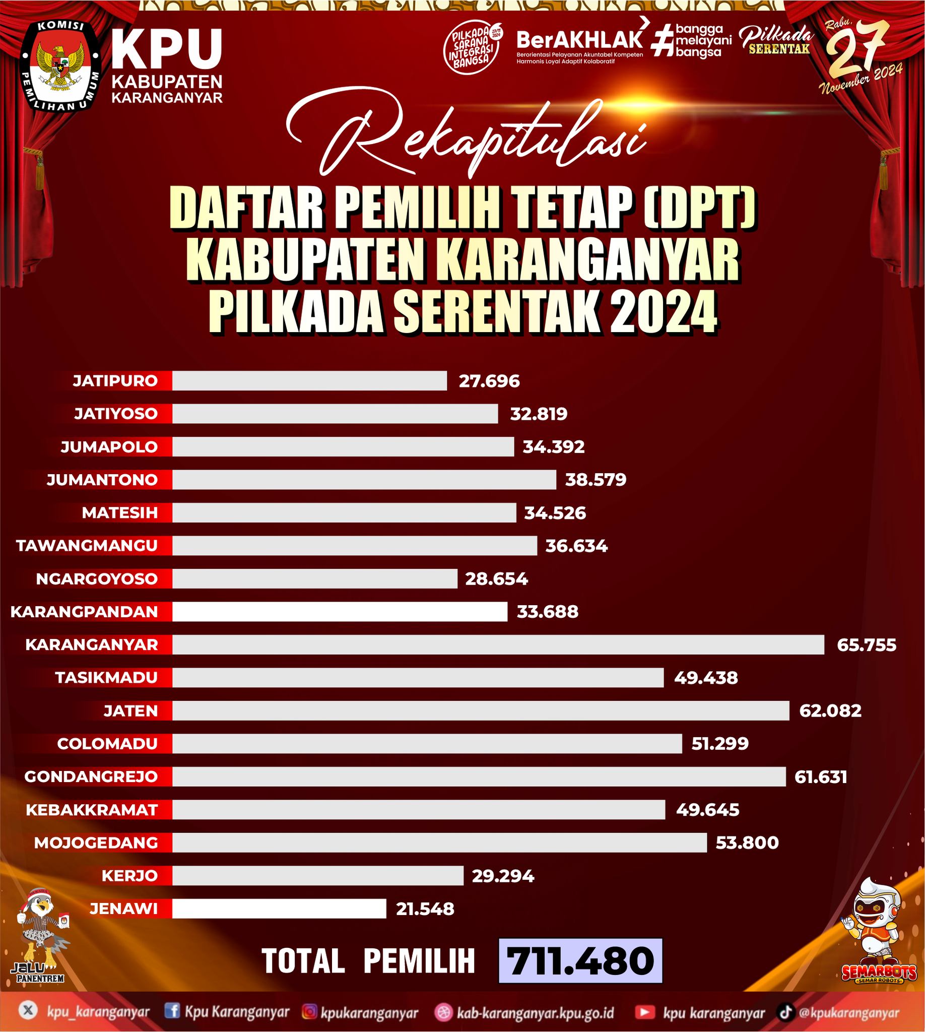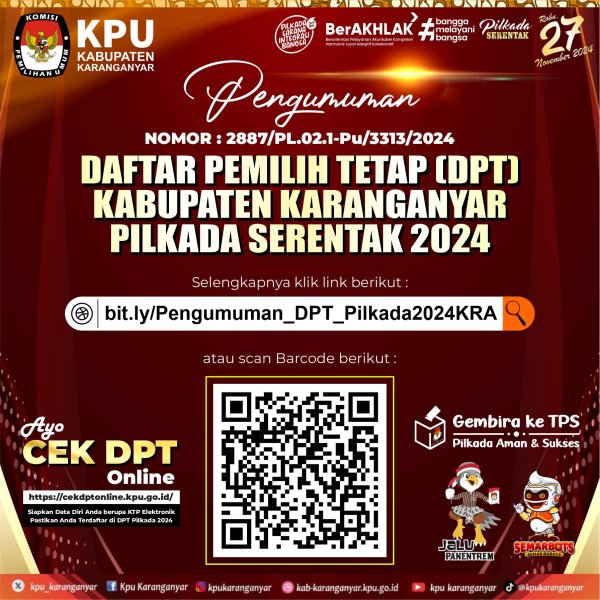 Berikut pengumuman Daftar Pemilih Tetap (DPT) untuk Pilkada 2024 Tingkat Kabupaten Karanganyar