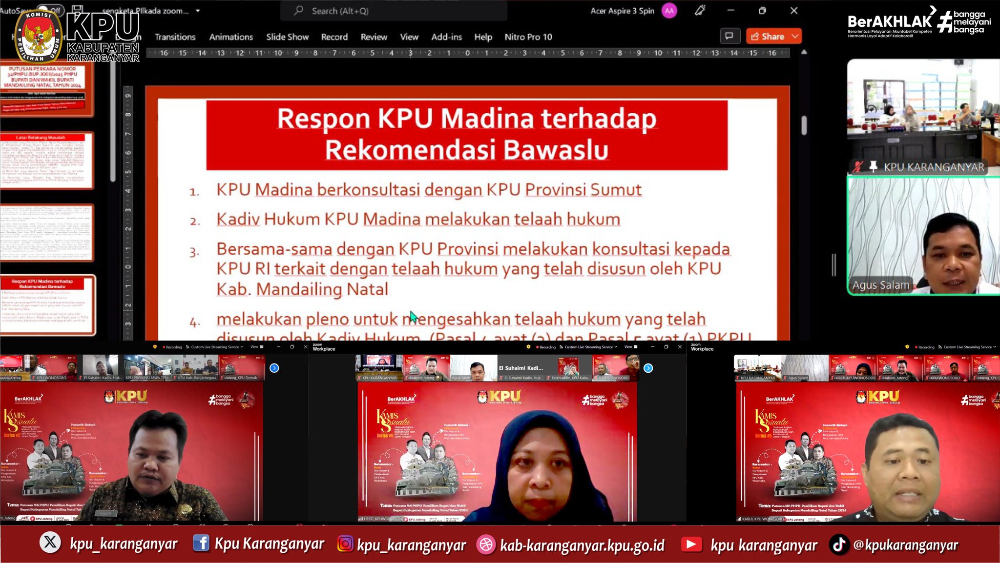 Komisi Pemilihan Umum (KPU) Kabupaten Karanganyar mengikuti kajian hukum yang membahas sengketa Pemilihan Bupati dan Wakil Bupati Mandailing Natal Tahun 2024, Jumat (13/06/2025) siang.