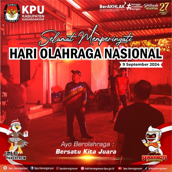 KPU Karanganyar mengucapkan Selamat Hari Olahraga Nasional 9 September 2024.