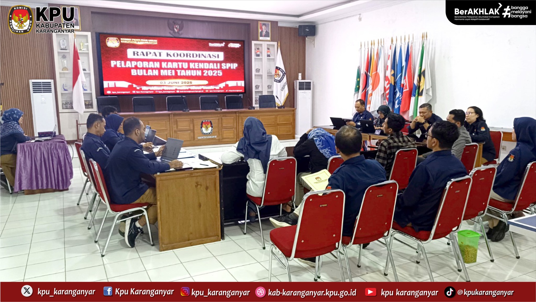 KPU Kabupaten Karanganyar Laksanakan Kegiatan Rapat Koordinasi Pelaporan Kartu Kendali SPIP Bulan Mei Tahun 2025, Selasa, (3 Juni 2025)