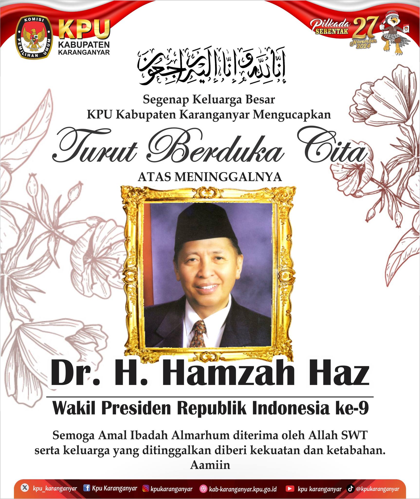 Segenap Keluarga Besar KPU Kabupaten Karanganyar mengucapkan Turut Berduka Cita atas Meninggalnya Dr. H. Hamzah Haz (Wakli Presiden Republik Indonesia ke-9).