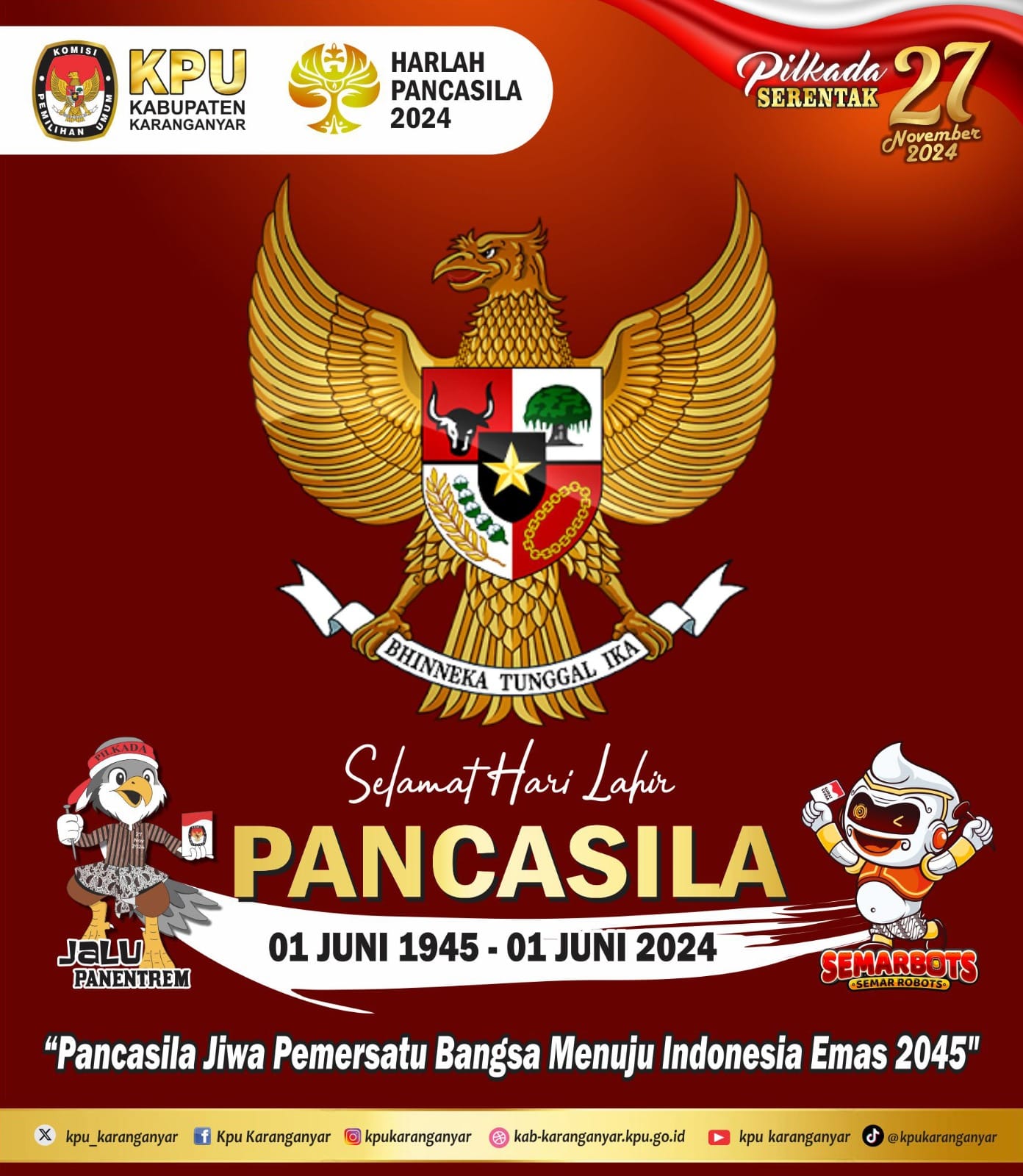 KPU Kabupaten Karanganyar mengucapkan Selamat Hari Lahir Pancasila (01 Juni 2024).