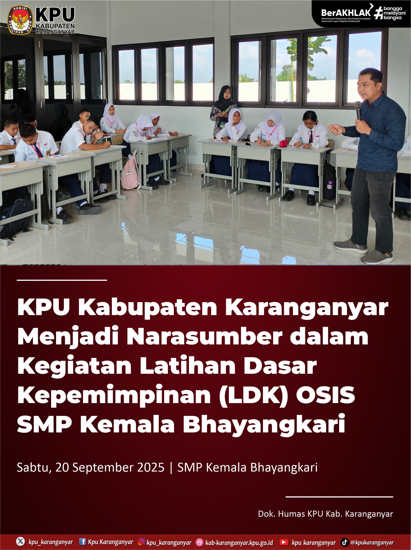 KPU Karanganyar Menjadi Narasumber Latihan Dasar Kepemimpinan OSIS di SMP Kemala Bhayangkari