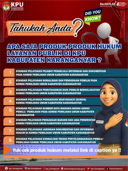 #Temanpemilih, Tahukah Anda apa saja produk-produk hukum layanan publik di KPU Kabupaten Karanganyar??