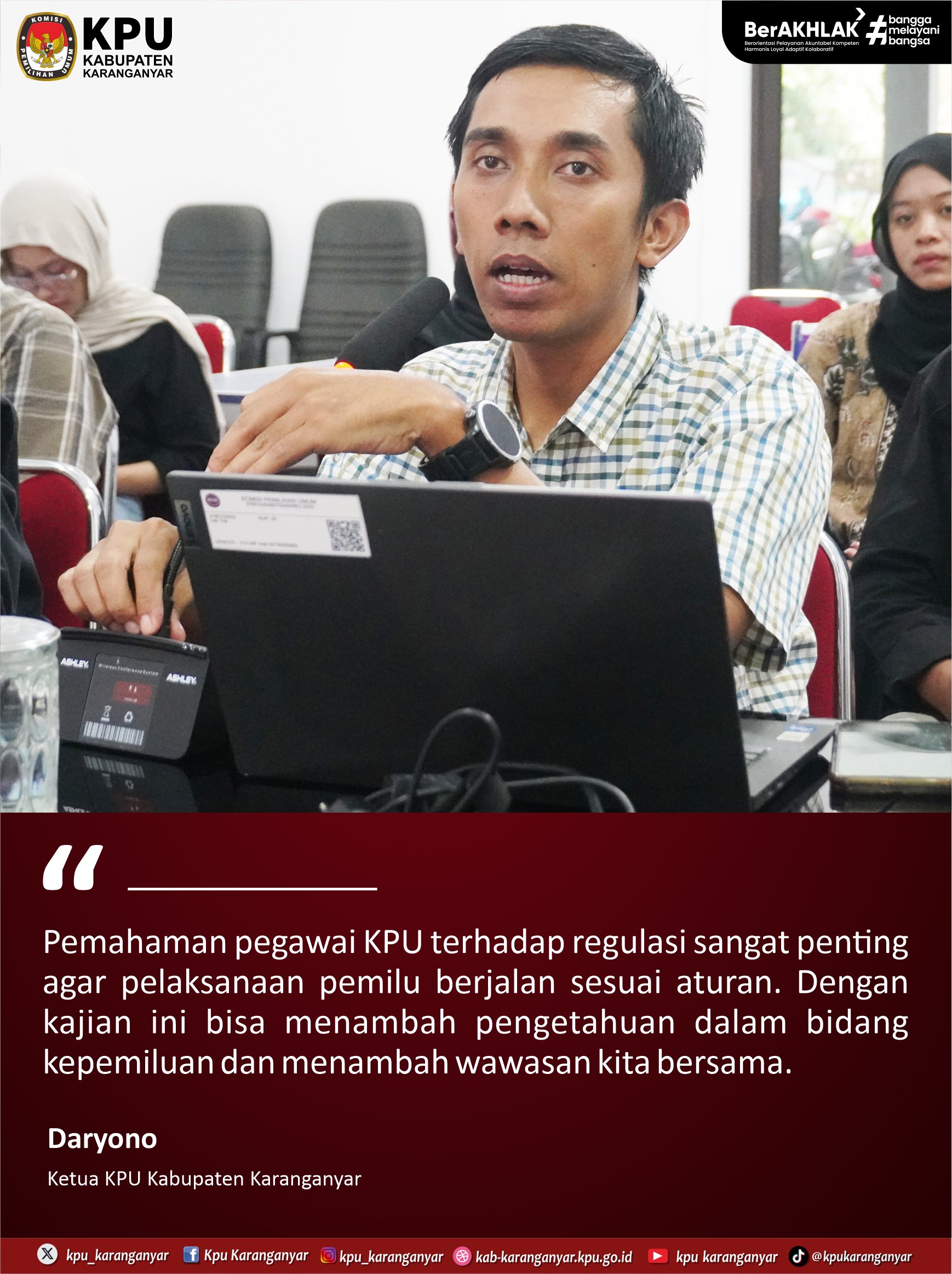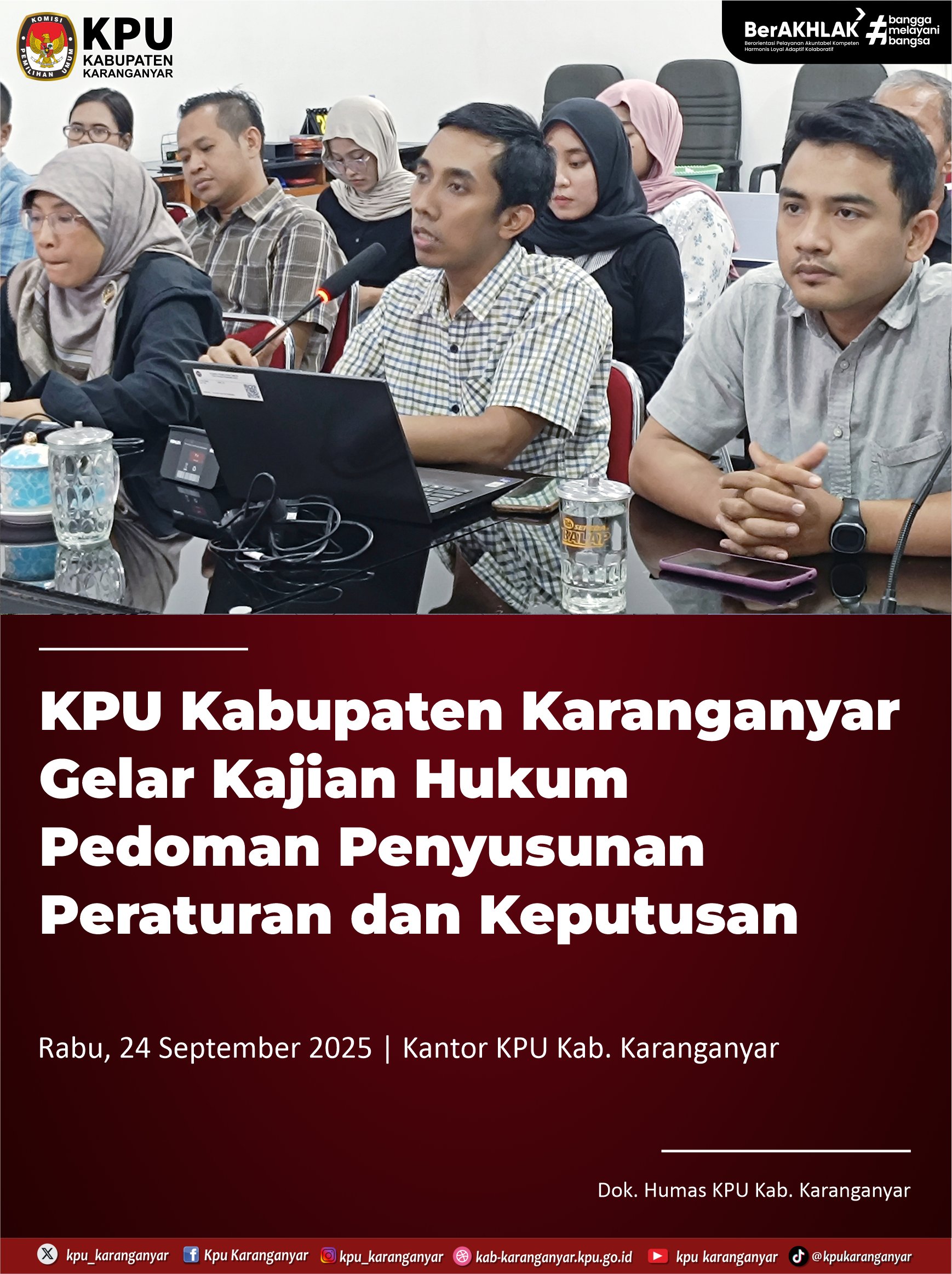 #Temanpemilih, KPU Kabupaten Karanganyar gelar kajian hukum pedoman penyusunan peraturan dan keputusan. Ingin tahu berita selengkapnya??