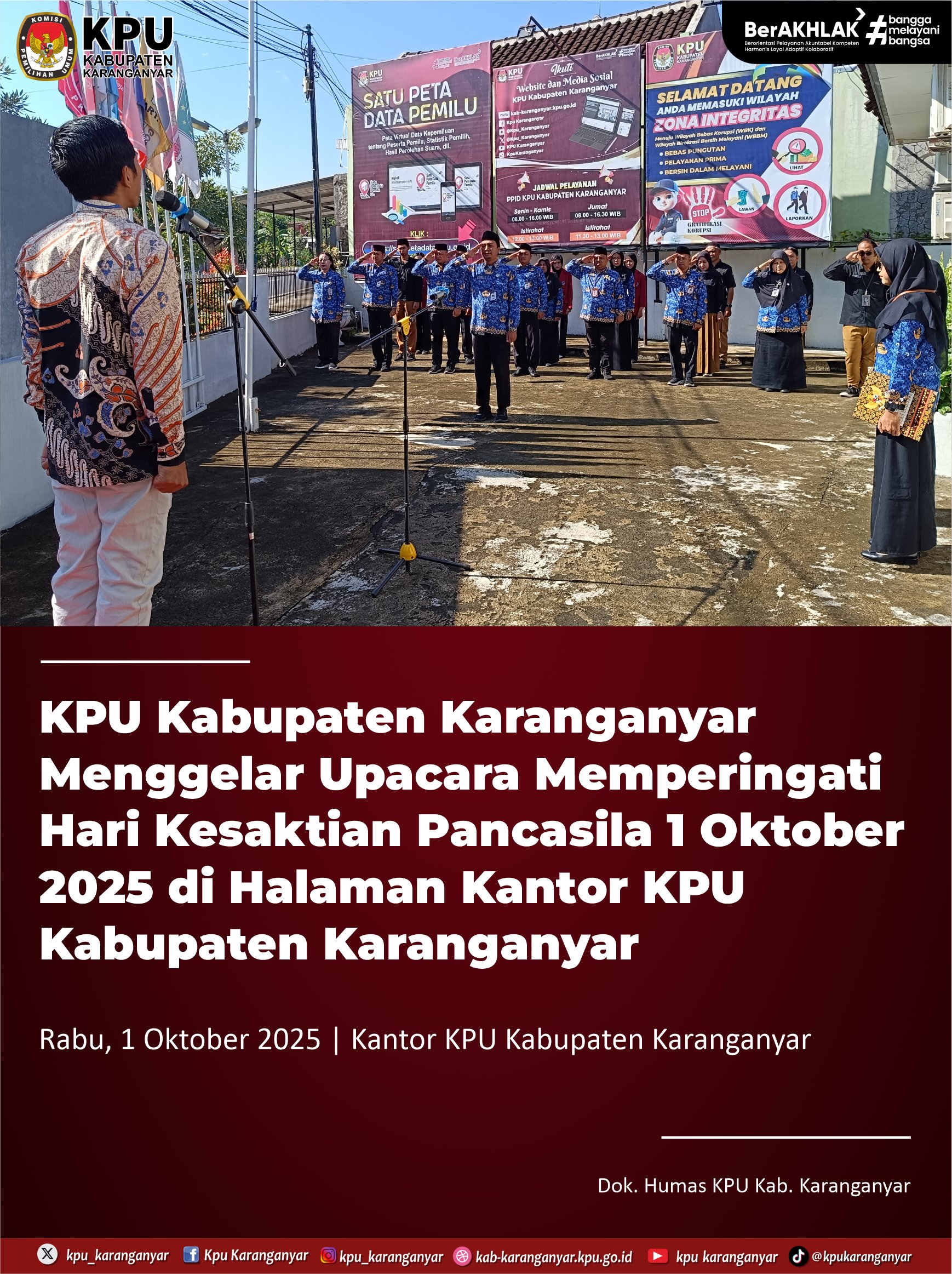 #Temanpemilih, KPU Kabupaten Karanganyar Menggelar Upacara Memperingati Hari Kesaktian Pancasila 1 Oktober 2025 di Halaman Kantor KPU Kabupaten Karanganyar.