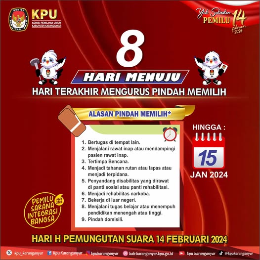 8 Hari Menuju Hari Terakhir Mengurus Pindah Memilih.