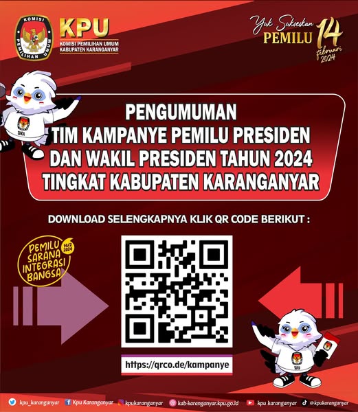 Pengumuman Tim Kampanye Pemilu Presiden dan Wakil Presiden Tahun 2024 Tingkat Kabupaten Karanganyar.