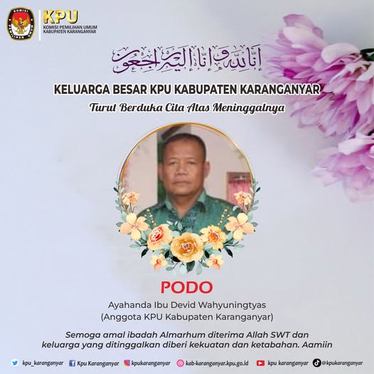urut Berduka Cita atas meninggalnya Bp. Podo, pada hari ini Selasa, 11 April 2023 - Ayahanda Ibu Devid Wahyuningtyas (Anggota KPU Kab. Karanganyar).