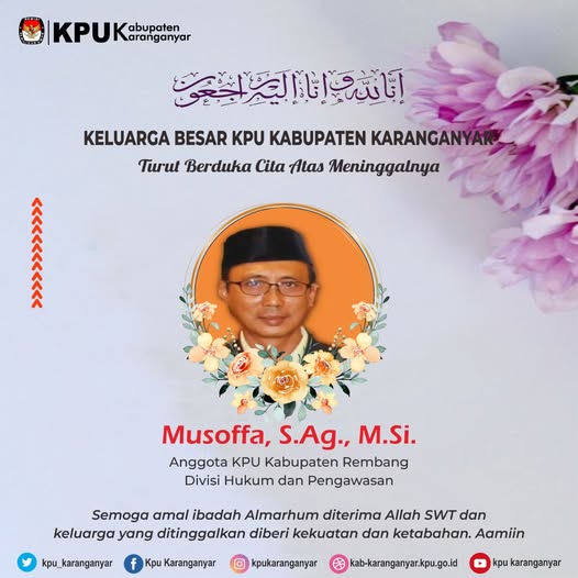 Turut berduka cita atas meninggalnya Bp. Musoffa, S.Ag., M.Si. Anggota KPU Kabupaten Rembang Divisi Hukum dan Pengawasan