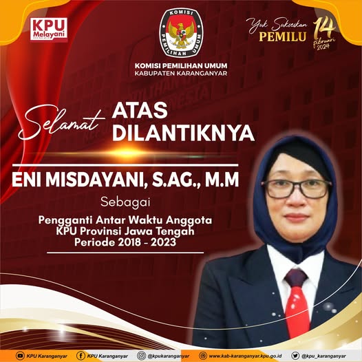 Selamat Atas Dilantiknya Eni Misdayani, S.Ag., M.M sebagai Anggota KPU Provinsi Jawa Tengah Periode 2018-2023.