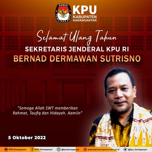 Selamat Ulang Tahun kepada Bapak Bernad Dermawan Sutrisno, Sekretaris Jenderal KPU.