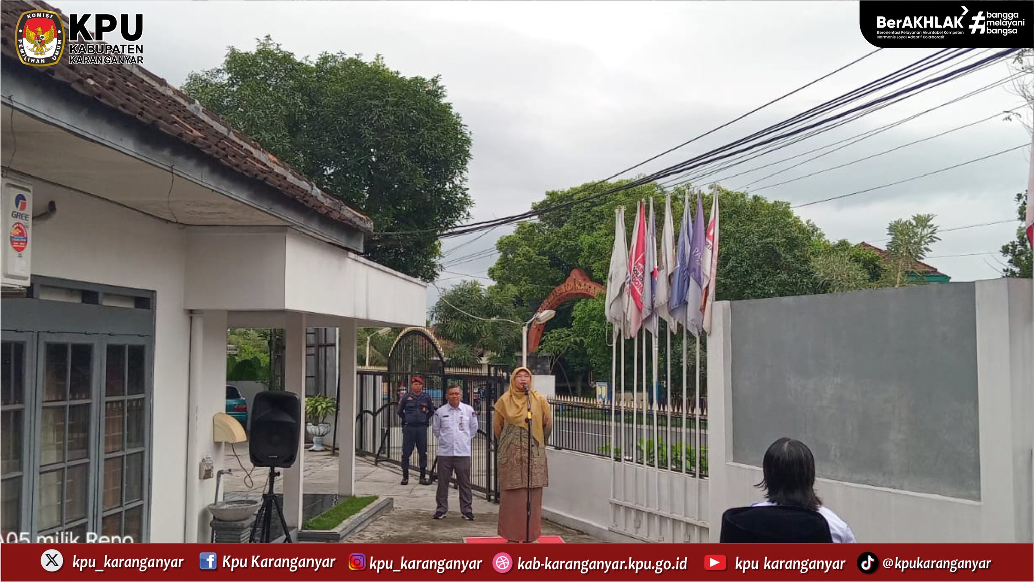 di Halaman Kantor KPU Kabupaten Karanganyar dengan dipimpin oleh Anggota KPU Kabupaten Karanganyar, Devid Wahyuningtyas, Senin (26 Mei 2025).