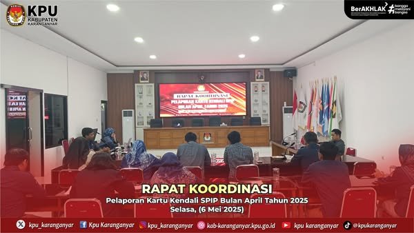 Komisi Pemilihan Umum (KPU) Kabupaten Karanganyar menyiapkan dokumen kartu kendali untuk pelaporan SPIP Bulan April kemarin. Dokumen tersebut untuk menuntaskan agenda penting dalam