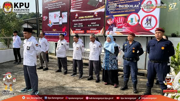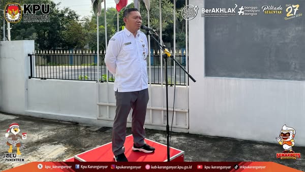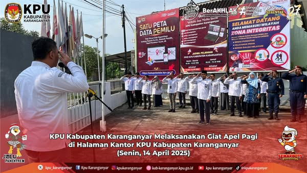 i di Halaman Kantor KPU Kabupaten Karanganyar dengan dipimpin oleh Sekretaris KPU Kabupaten Karanganyar, Widy Hargus Kistyanto, Senin (14 April 2025).