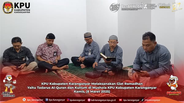 KPU Kabupaten Karanganyar Melaksanakan Giat Ramadhan Yaitu Tadarus Al-Quran dan Kultum di Mushola KPU Kabupaten Karanganyar. Kamis, 06 Maret 2025 09:42 3 , Kamis (6 Maret 2025) #kpukaranganyar #ramadan2025 Bagikan: Telah dilihat 3 kali