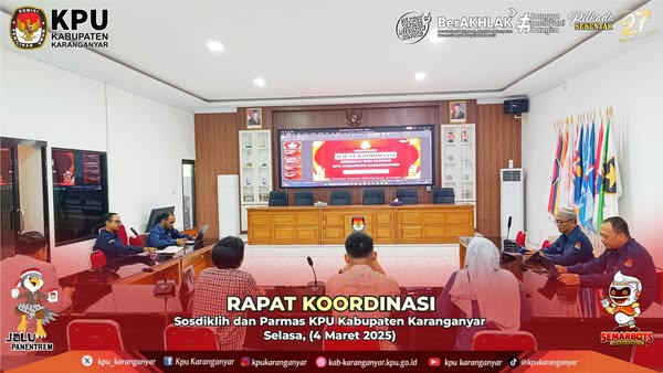 Rapat Koordinasi Sosdiklih dan Parmas KPU Kabupaten Karanganyar, Selasa, (4 Maret 2025). Rabu, 05 Maret 2025 09:53 30 KPU Kabupaten Karanganyar Melaksanakan #KPUKaranganyar #Pilkada2024 Bagikan: Telah dilihat 30 kali