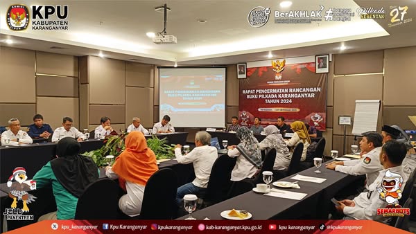 Demikian disampaikan Ketua KPU Karanganyar, Daryono dalam rapat pencermatan buku yang akan diberi judul Sabda Kawula : Risalah Penyelenggaraan Pilkada Serentak 2024 Kabupaten Karanganyar.