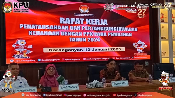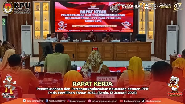 Rapat Kerja Penatausahaan dan Pertanggungjawaban Keuangan dengan PPK Pada Pemilihan Tahun 2024, (Senin, 13 Januari 2025). Kamis, 16 Januari 2025 11:19 3 KPU Kabupaten Karanganyar Selenggarakan #KPUKaranganyar Bagikan: Telah dilihat 3 kali