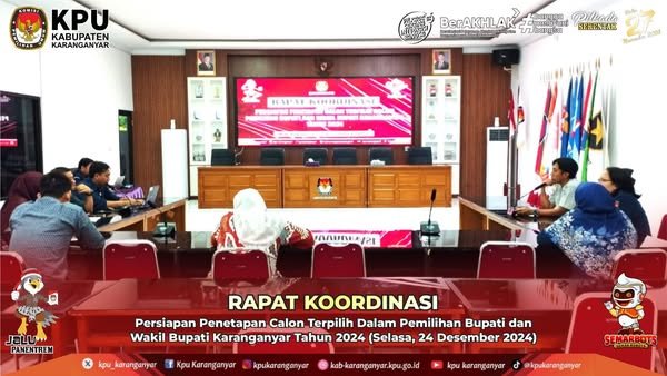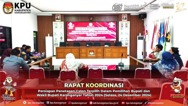 Rapat Koordinasi Persiapan Penetapan Calon Terpilih Dalam Pemilihan Bupati dan Wakil Bupati Karanganyar Tahun 2024 (Selasa, 24 Desember 2024).