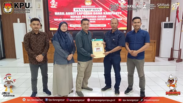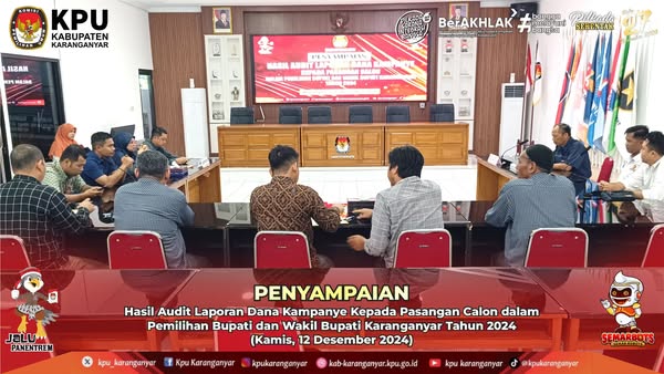 Penyampaian Hasil Audit Laporan Dana Kampanye Kepada Pasangan Calon dalam Pemilihan Bupati dan Wakil Bupati Karanganyar Tahun 2024 (Kamis, 12 Desember 2024).