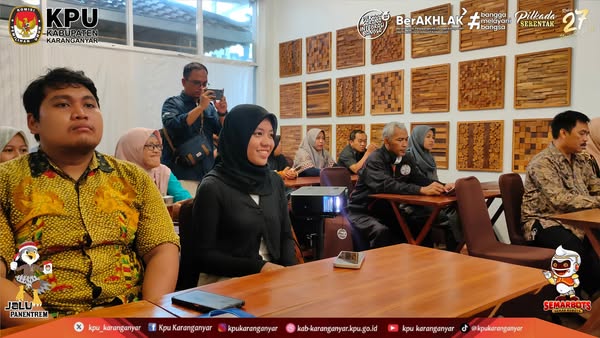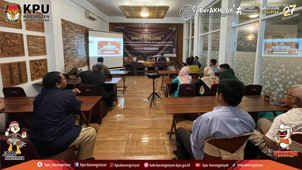 Rapat Evaluasi Pelaksanaan Sosialisasi Pilkada Serentak Tahun 2024 bersama Relawan Demokrasi Kabupaten Karanganyar (Selasa, 10 Desember 2024).