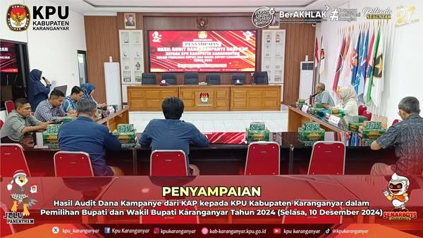 Penyampaian Hasil Audit Dana Kampanye dari KAP kepada KPU Kabupaten Karanganyar dalam Pemilihan Bupati dan Wakil Bupati Karanganyar Tahun 2024.