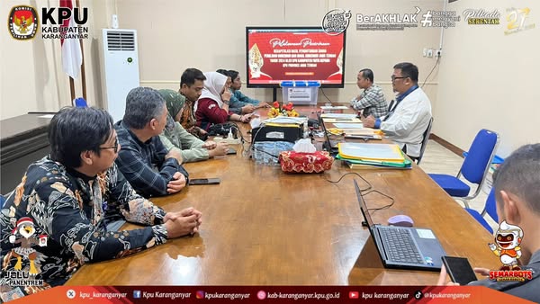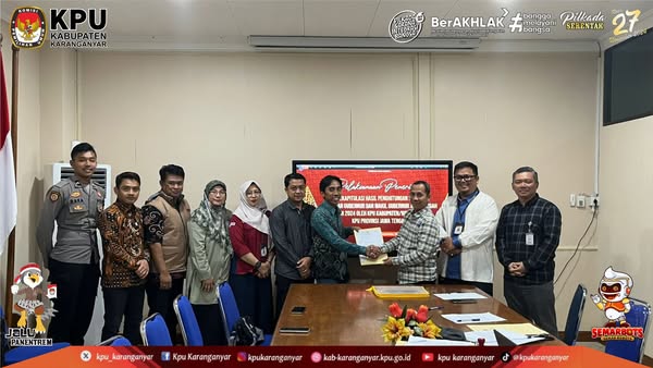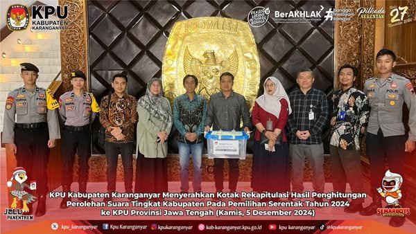 KPU Kabupaten Karanganyar Menyerahkan Kotak Rekapitulasi Hasil Penghitungan Perolehan Suara Tingkat Kabupaten Pada Pemilihan Serentak Tahun 2024 ke KPU Provinsi Jawa Tengah. Rabu, 11 Desember 2024 14:14 2 (Kamis, 5 Desember 2024) #KPUKaranganyar #PemilihanSerentak2024 Bagikan: Telah dilihat 2 kali