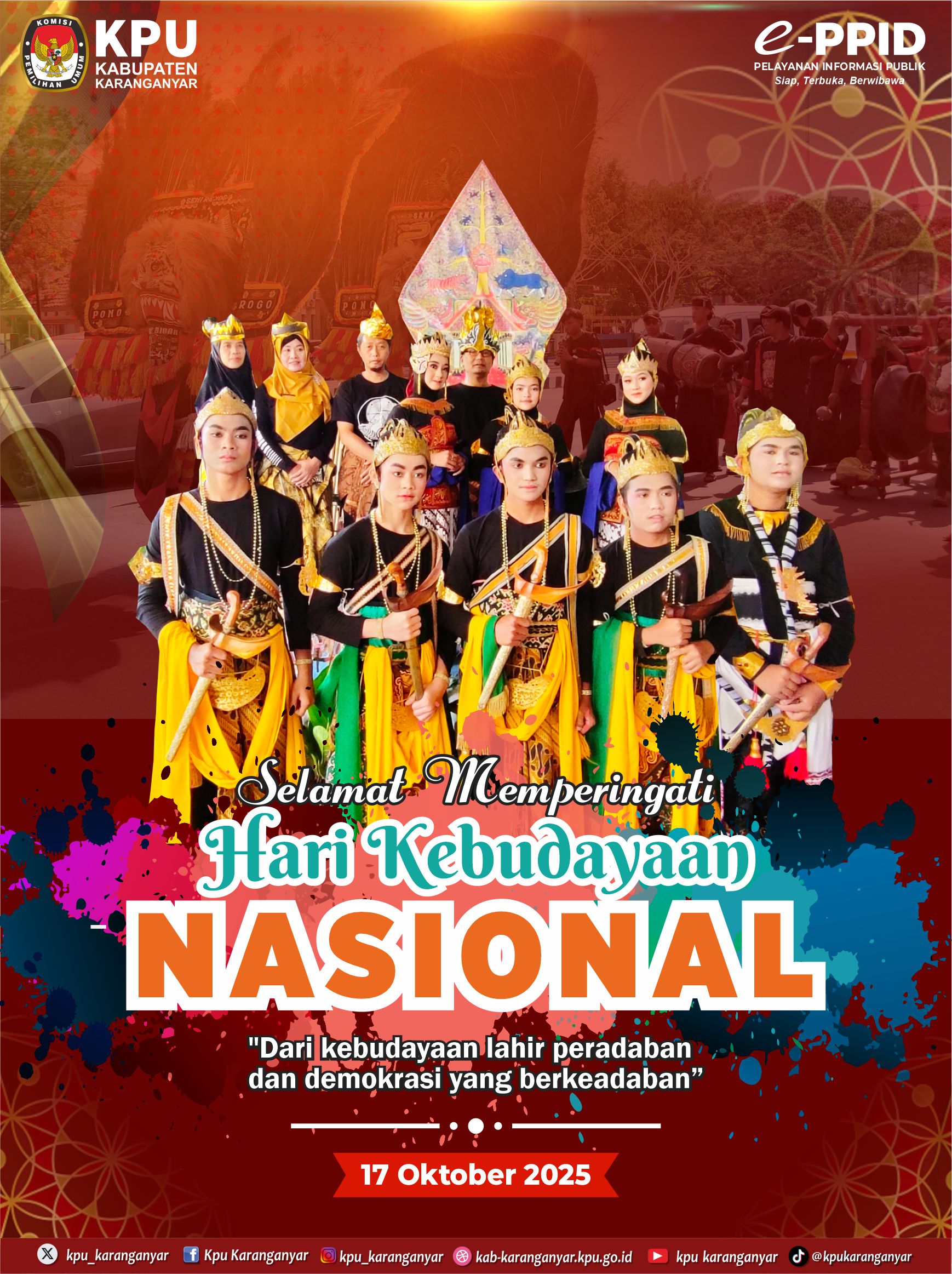 #TemanPemilih, KPU Kabupaten Karanganyar mengucapkan selamat memperingati hari Kebudayaan Nasional, 17 Oktober 2025.
