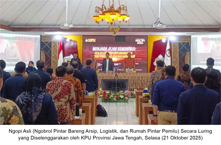 KARANGANYAR — Komisi Pemilihan Umum (KPU) Kabupaten Karanganyar kembali mengikuti kegiatan Ngopi Asli (Ngobrol Pintar Bareng Arsip, Logistik, dan Rumah Pintar Pemilu) yang diselenggarakan oleh KPU Provinsi Jawa Tengah pada Selasa, 21 Oktober 2025.