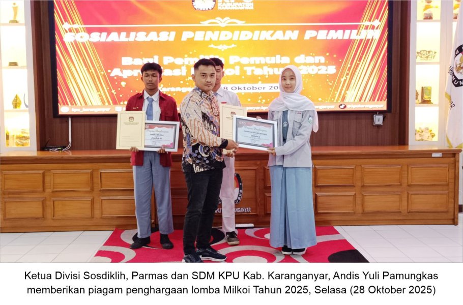 Apresiasi Milkoi diberikan pada saat acara Sosialisasi Pendidikan Pemilih bagi Pemilih Pemula dan Apresiasi Milkoi 2025, bertepatan dengan peringatan hari Sumpah Pemuda ke 97, dengan mengambil tema “generasi muda peduli demokrasi”, yang dilaksanakan oleh KPU Karanganyar, Selasa (28/10/2025).